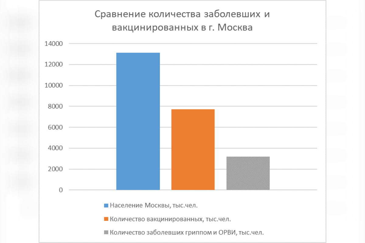 В проекте создана математическая модель, демонстрирующая эффективность вакцинации против гриппа в Москве и Московской области. Также было получено более обширное представление об эффективности вакцины от гриппа и прослеживании статистики заболевания гриппом, представленном в виде математической модели. Интересной деталью исследования стало изучение статистики, сбор данных и вычисление количества заболевших вирусом в зависимости от количества вакцинированных.