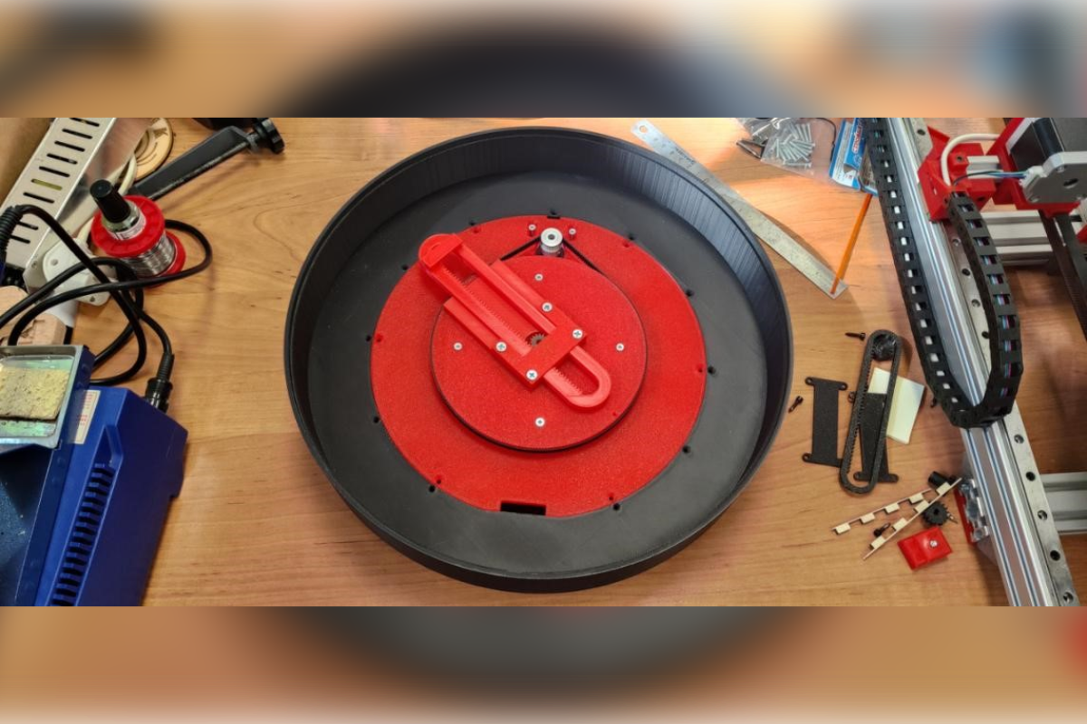 Песочная чаша для медитации представляет собой диск с песком и шариком, который перемещается по песку и рисует узоры. Под чашей находится механизм перемещения шарика с магнитом. Имеется простой рабочий прототип, в дальнейшем на основе полученного опыта планируется создать увеличенную версию на более мощных моторах.
