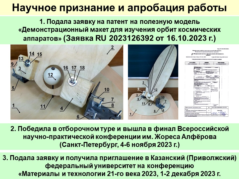 - Научный руководитель: Екимовская А.А., cтудентка, техник, 2-й курс, Московский авиационный институт, Аэрокосмический факультет (Институт №6)