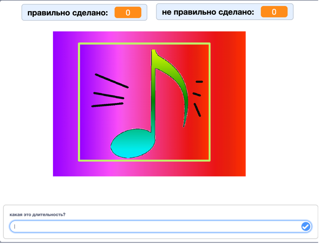 В работе приведены примеры игр, разработанных мной на платформе Scratch, описаны дальнейшие шаги по созданию системы музыкального обучения в сети Интернет.