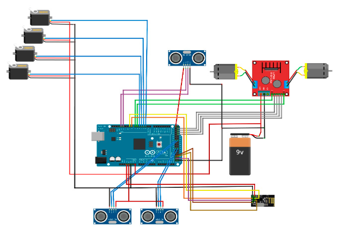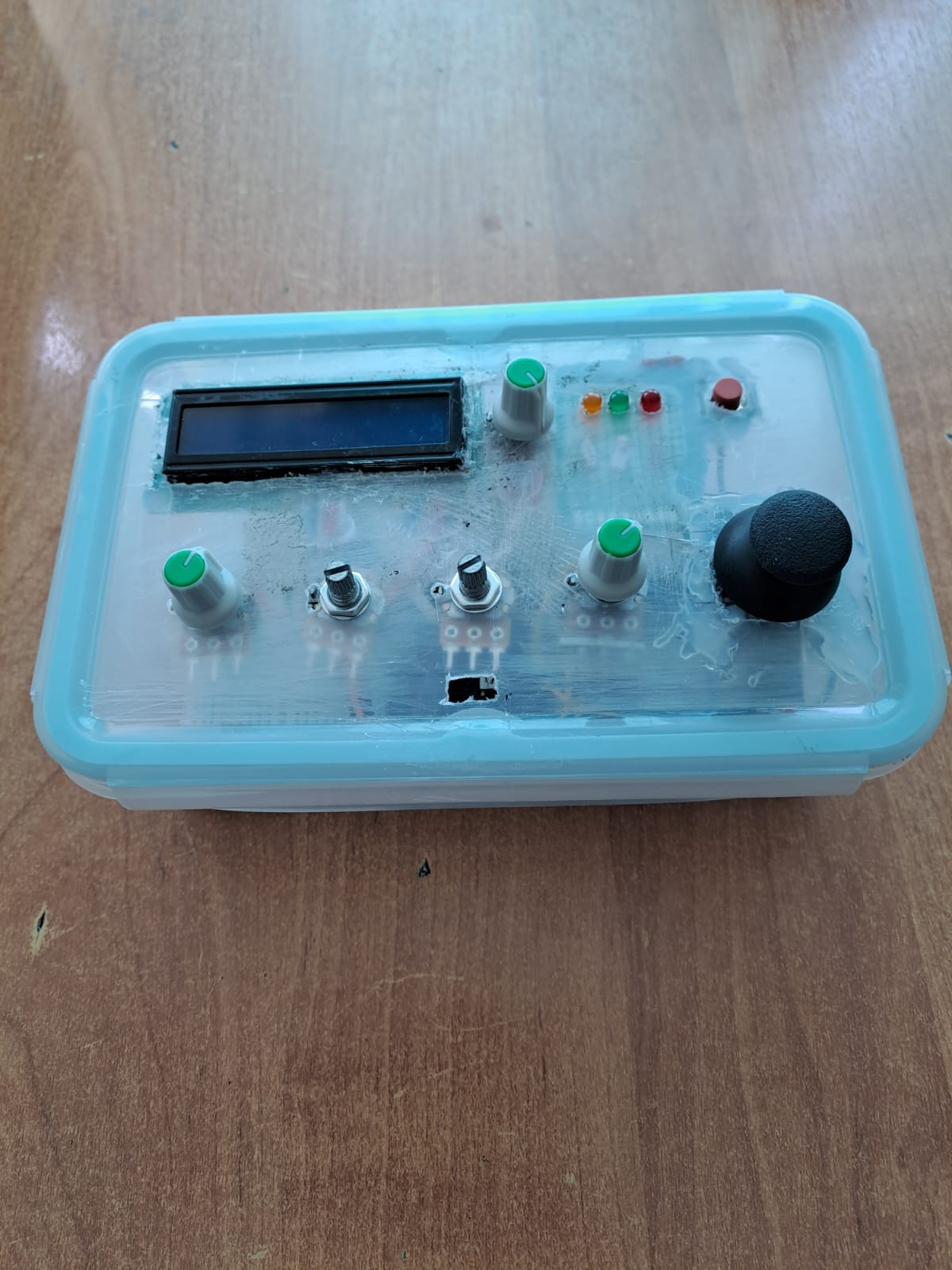 Для создания данного проекта я использовал платформу Arduino MEGA, драйвер моторов L298N, 2 мотор-редуктора, 2 li-ion аккумулятора формата 18650,батарейку типа крона, модуль джойстика, 4 потенциометра, 2 модуля NRF24L01, ЖК дисплей, 4 резистора на 330 ОМ, 3 светодиода разных цветов,кнопка,соединительные провода, тумблеры для линии питания,конденсаторы 0,1 мкф, 2 контейнера и 2 колеса для моторчиков.