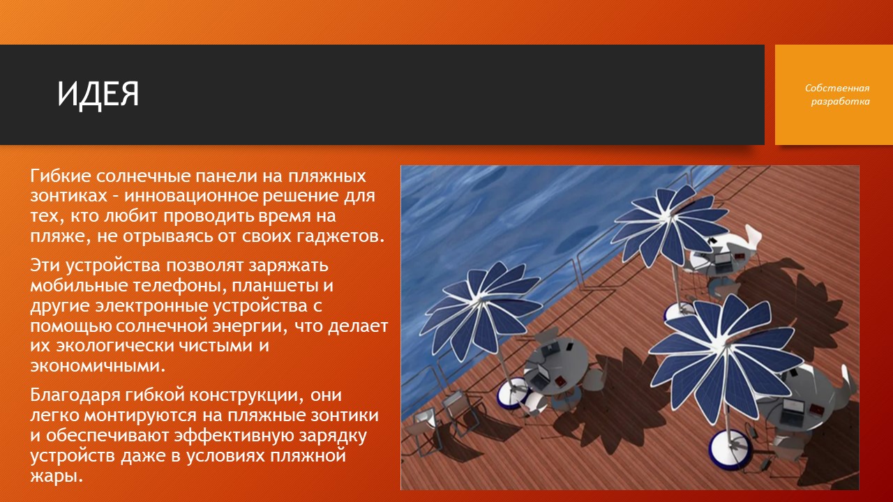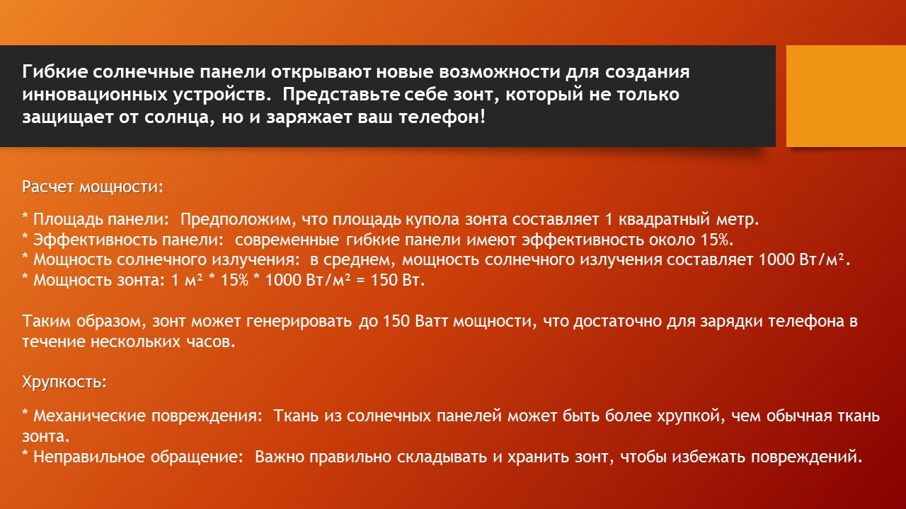 Зонт-зарядка и солнечный навес – это примеры того, как гибкие солнечные панели могут быть использованы для создания инновационных и функциональных продуктов. Их привлекательность заключается в экологичности, доступности и удобстве использования. С развитием технологий и снижением цен, такие устройства могут стать частью нашей повседневной жизни, делая мир чище и комфортнее.