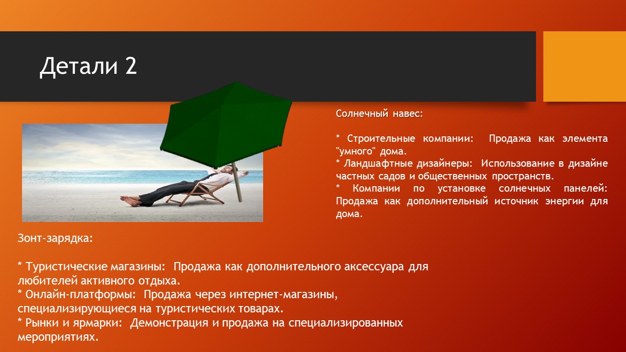 Данные примеры продуктов будут хорошо продаваться не только как людям, а также и компаниям занимающимися организацией пляжного отдыха.