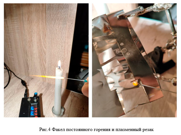 5. Сравнили эффективность работы 3 и 4 модели: при работе 5 мин и силе тока 4 А, факел постоянного горения увеличил время горения с 5 сек до 30 сек.